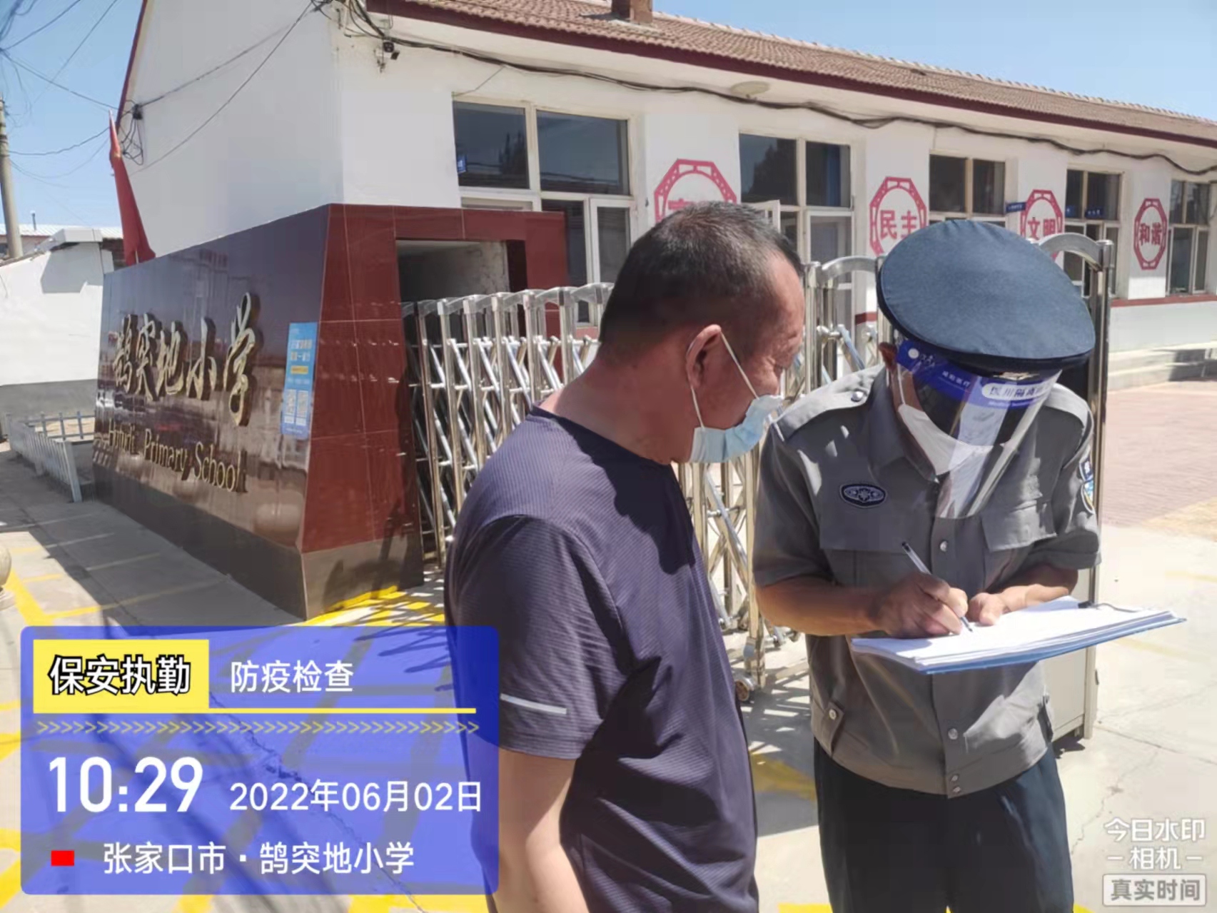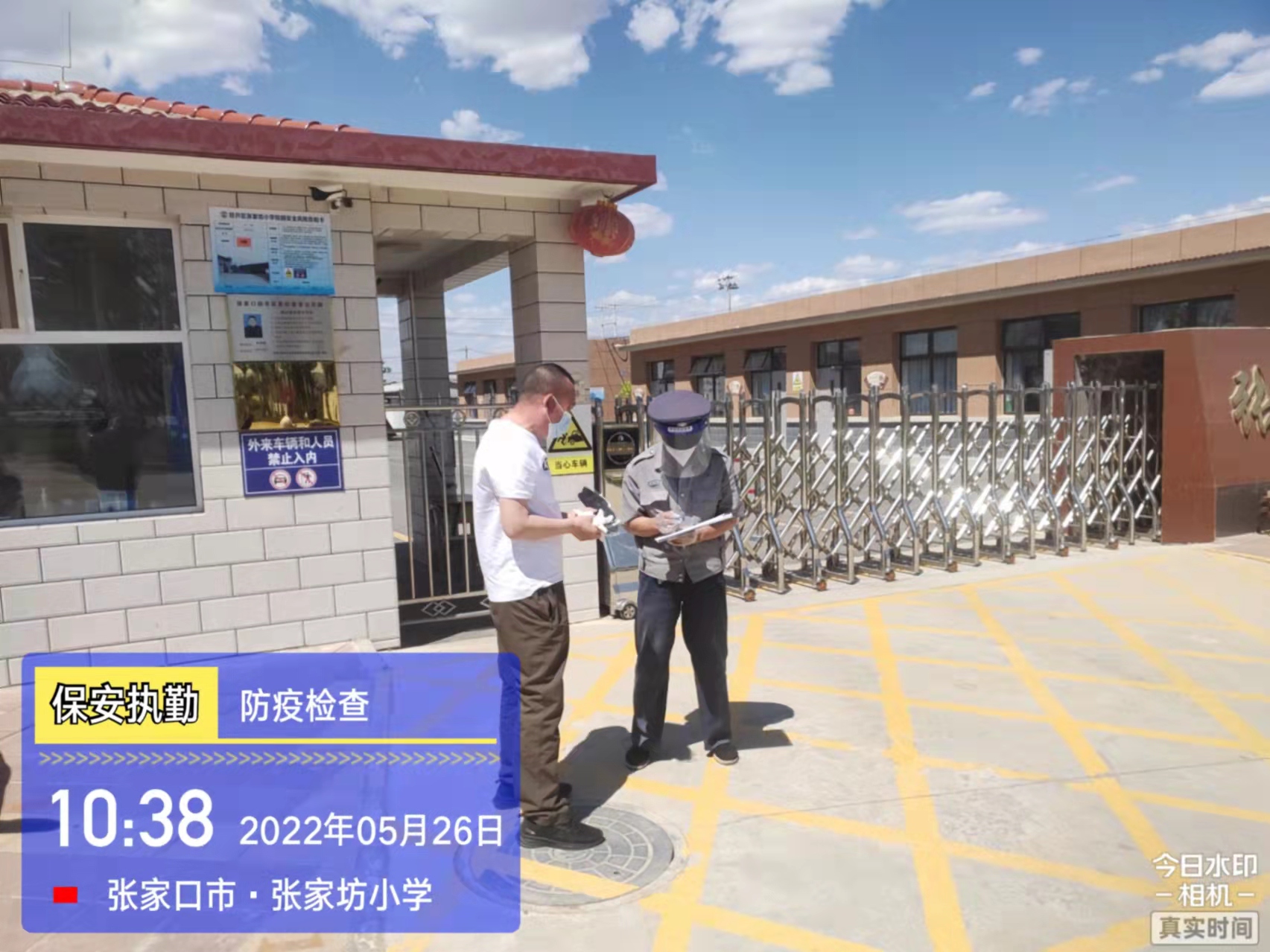 會后,我公司迅速召開“疫情期間學(xué)校門衛(wèi)安全防控工作要求”的會議,制定了校園安全防疫規(guī)定:疫情防控期間,校園保安隊(duì)員必須穿制服,規(guī)范佩戴“三件套”(防護(hù)隔離面罩、N95口罩、一次性PVC手套);進(jìn)出校園的師生必須測量體溫,外來人員需登記、測溫、掃碼(幸福張家口,呈綠碼)、且持7日內(nèi)核酸陰性檢測結(jié)果;保安室需保持干凈整潔,物品擺放有序,勤開窗通風(fēng),定期噴灑消毒藥水。為此,公司特成立校園防疫檢查小組,由副經(jīng)理帶隊(duì),協(xié)同主管大隊(duì)長對經(jīng)開區(qū)所有中小學(xué)校安保崗位進(jìn)行防疫工作檢查,檢查期間,發(fā)現(xiàn)問題,現(xiàn)場處理,并及時(shí)與校方領(lǐng)導(dǎo)溝通,杜絕同樣問題再次出現(xiàn),確保校園防疫安保工作萬無一失,為各校師生鑄就一道安全防線!